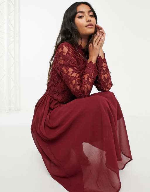 Product Name: Maroon lace long sleeve dress clearance